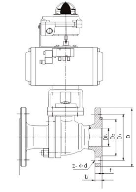 气动法兰球阀尺寸: