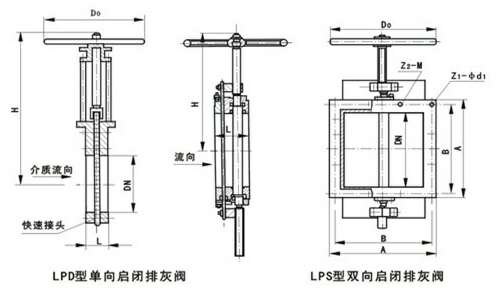 LPD单向/LPS双向启闭排灰阀主要外形连接尺寸
